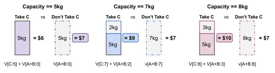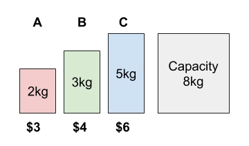 We’re done! The optimal value for an 8kg sack with Items A, B, & C is $10. It’s finally time to write some code: